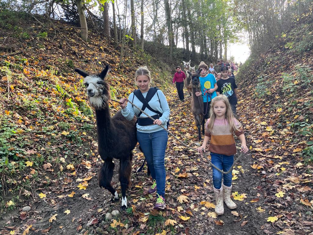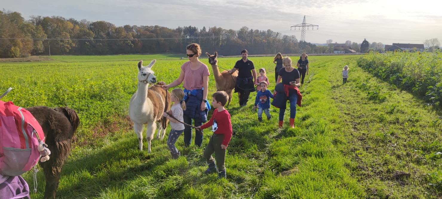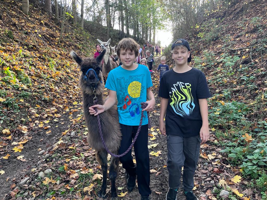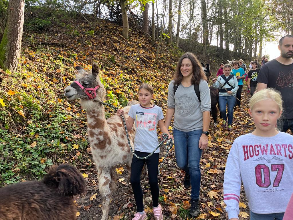 Bei schönstem Herbstwetter fand auch dieses Jahr wieder der Programmhöhepunkt unserer Kindergruppe statt: Die Lamawanderung.